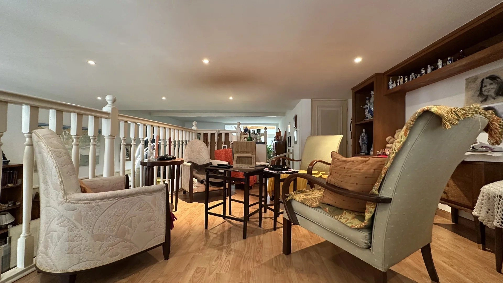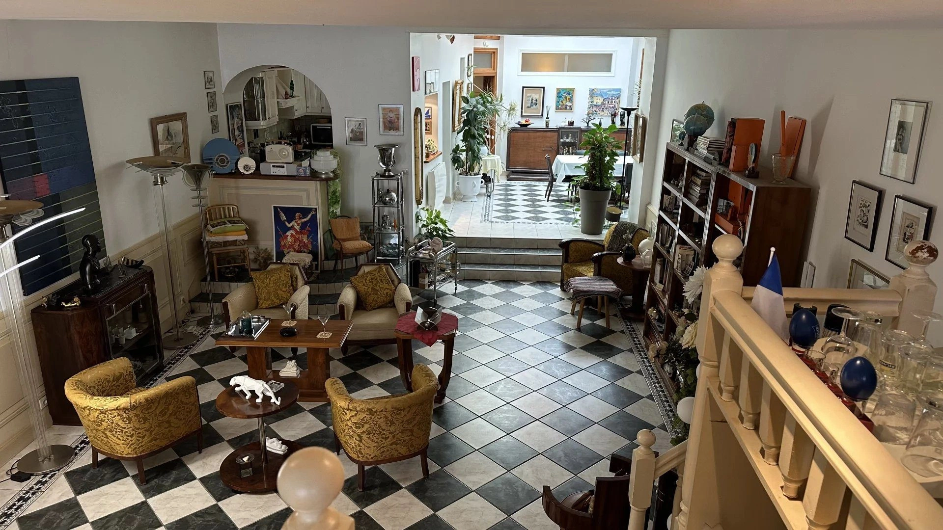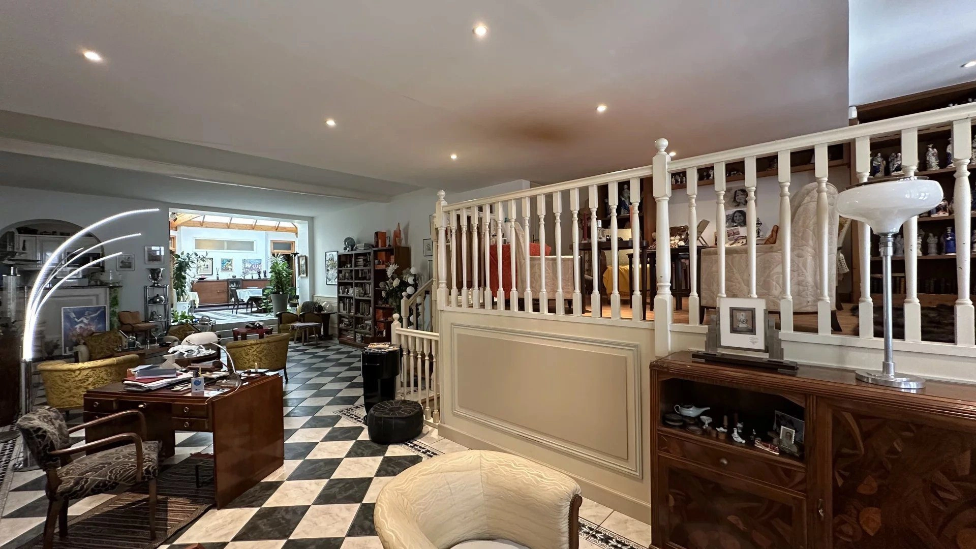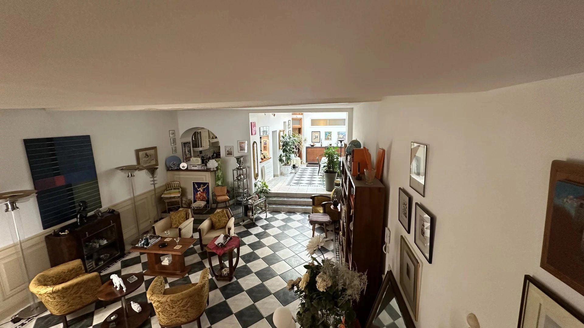 Principalement de plain-pied, cet appartement développe 122 m². on y découvre une salle à manger sous verrière, une cuisine indépendante, et un vaste salon d’environ 50 m² aux volumes majestueux, habillé de boiseries et sublimé par plus de 3 mètres de hauteur sous plafond.