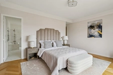 L’agencement, équilibré et fluide, comprend deux salons de réception ouverts sur le Champ-de-Mars, une cuisine sur mesure avec îlot central, une suite parentale panoramique ainsi que trois autres suites avec salles de bains privatives, garantissant confort et intimité.