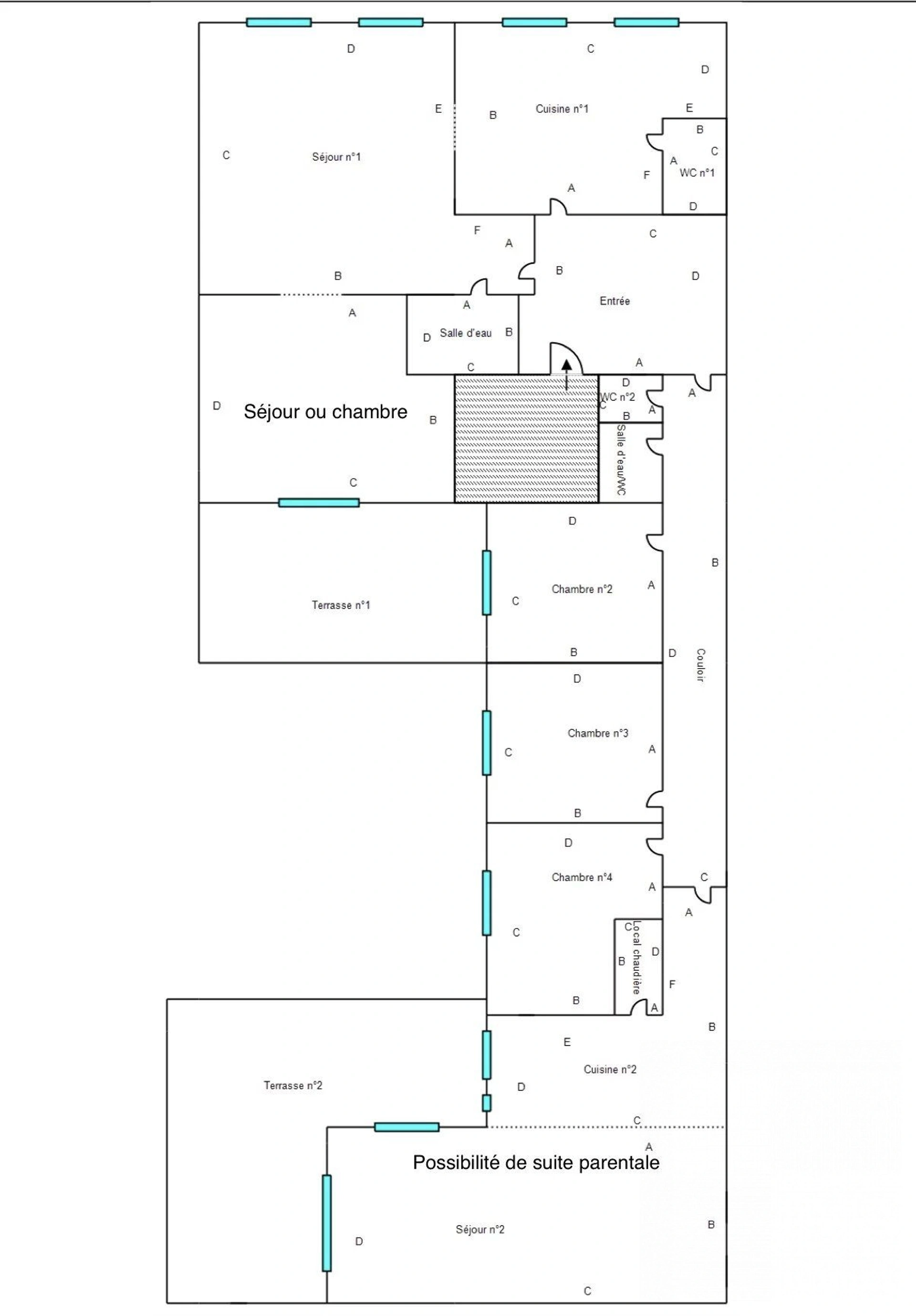 • De part sa configuration, une partie pourrait être louée pour diminuer le montant de la mensualité d’emprunt ou louer les 2 appartements pour une meilleure rentabilité locative. • Deux places de parking, couverte et sécurisée à quelques pas pourront être attribués en sus.