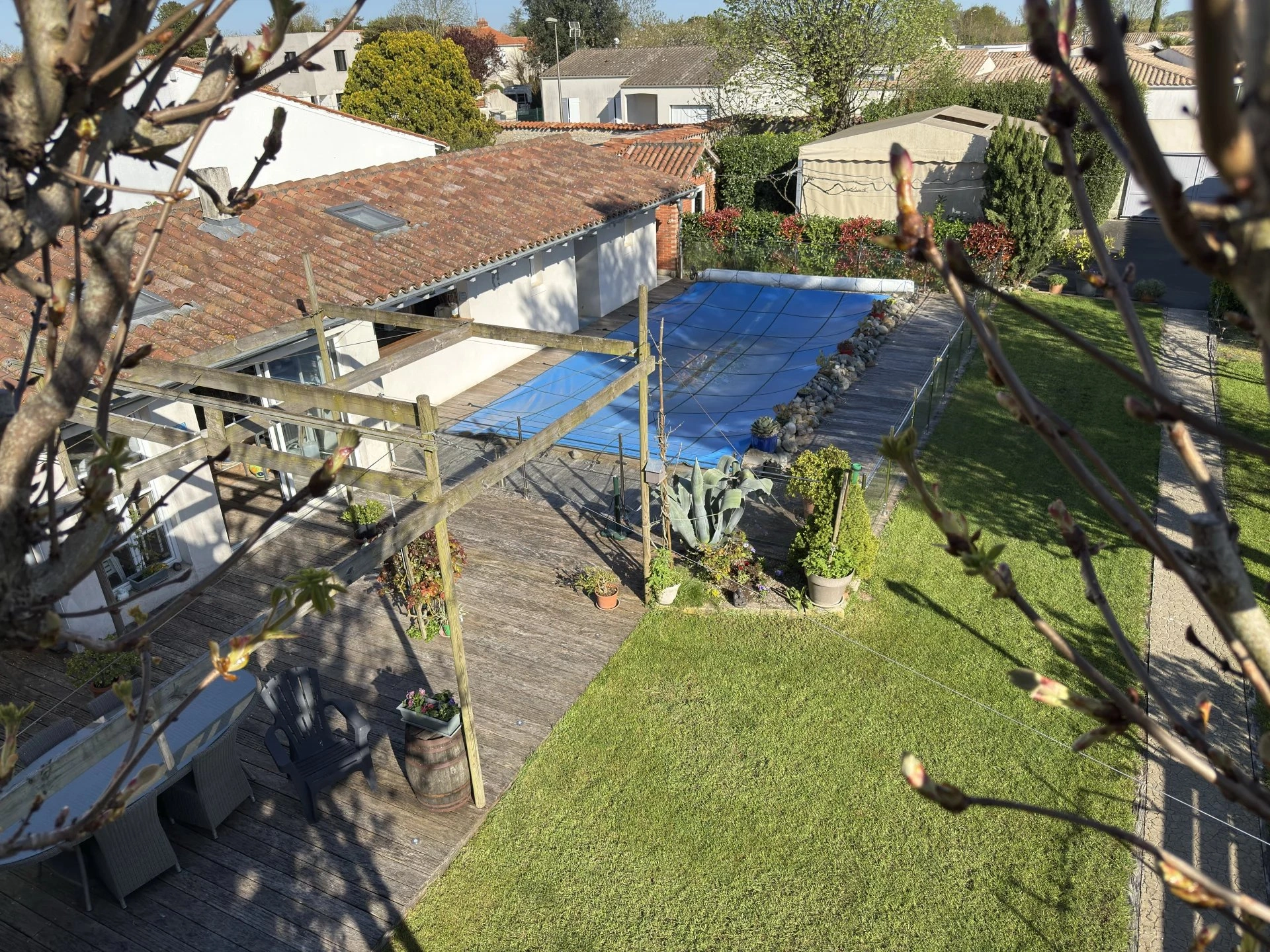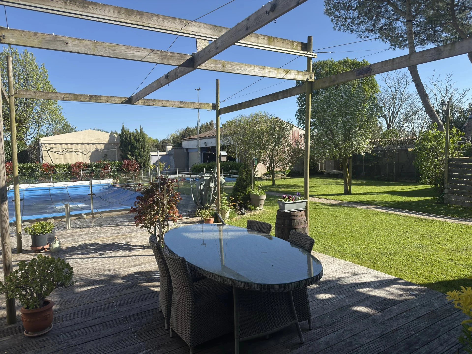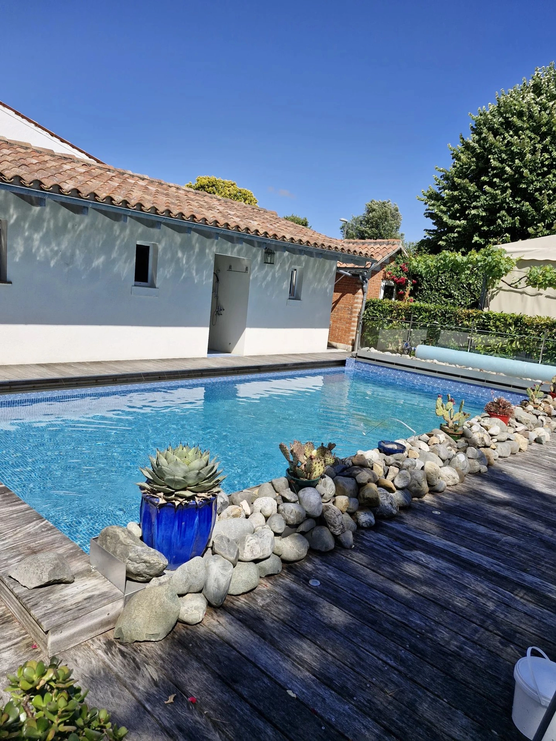 Dans un environnement paisible, découvrez cette superbe demeure ancienne de 250 m², rénovée avec soin, alliant charme de l’ancien et confort moderne. Elle comprend une suite parentale de 40 m², trois chambres, une cuisine de 21 m² ouverte sur une terrasse intime, ainsi que de lumineuses pièces de vie donnant sur un jardin paysagé avec piscine et terrasse de 45 m². En face, une dépendance de 200 m² rénovée en 2017 accueille une grande pièce de vie et trois suites, idéale pour recevoir ou développer une activité touristique. Le terrain arboré de 1640 m² permet de stationner 8 à 10 voitures. Cuisine d’été, terrain de pétanque, cabane pour les enfants : tout est réuni pour une vie de famille ou un projet d’accueil haut de gamme. À noter : Bourgneuf fut jadis le site d'une ancienne commanderie médiévale, liée aux Templiers ou Hospitaliers, témoignant d’un riche passé historique.
