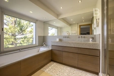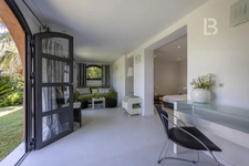 À seulement dix minutes de la Croisette, elle allie calme absolu et proximité des adresses emblématiques de Cannes. La maison principale se distingue par de vastes espaces de réception baignés de lumière, prolongés par une véranda conviviale. Elle accueille plusieurs chambres en suite, dont une superbe suite parentale avec salle de bains, bureau et dressings.