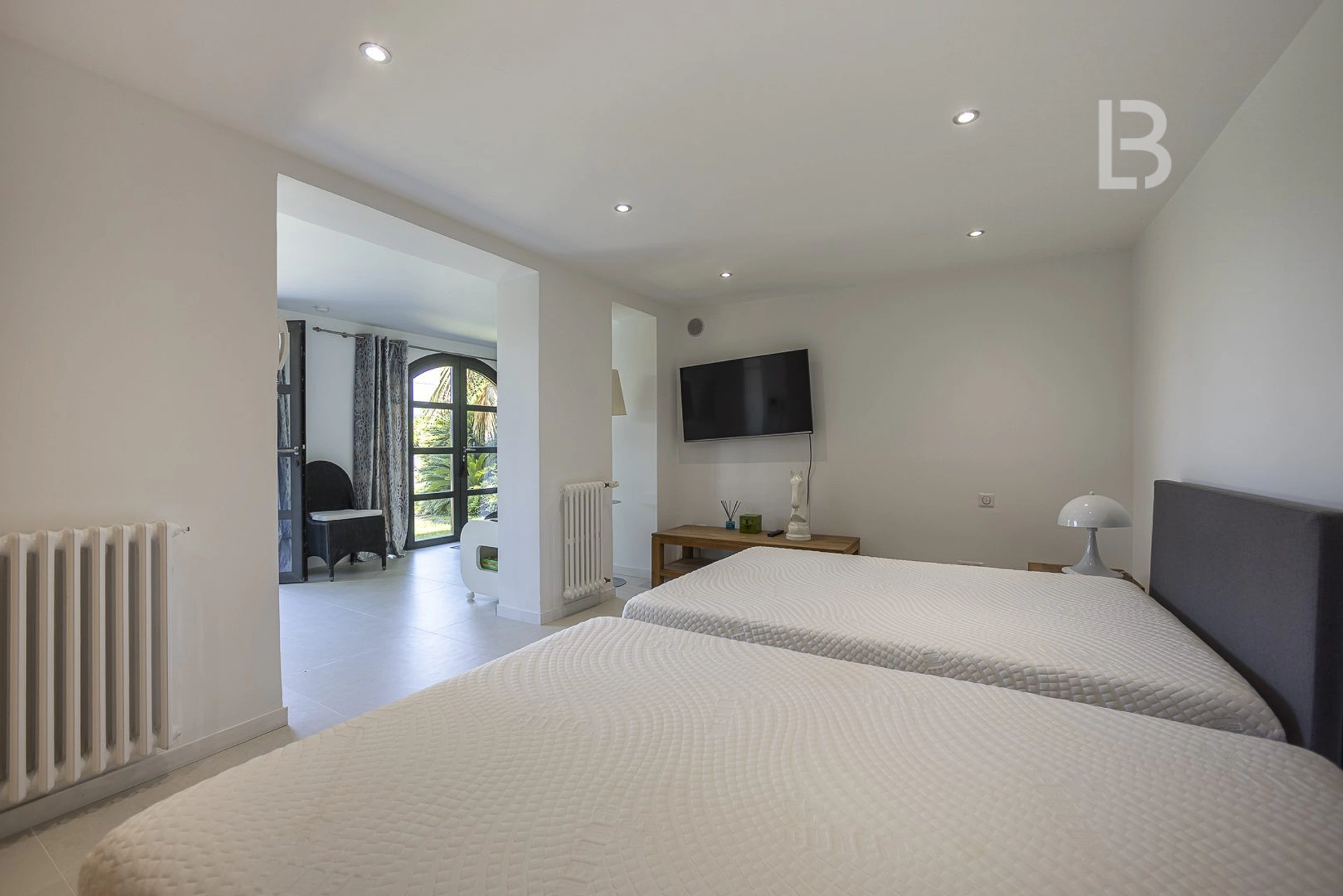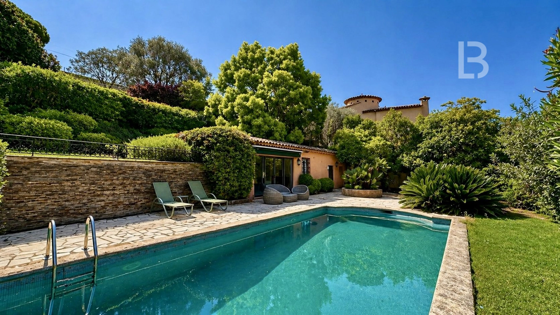 Conçue pour recevoir dans les meilleures conditions, la propriété dispose également d’un appartement indépendant ainsi que d’une chambre séparée pour les invités, garantissant à chacun confort et intimité. À l’extérieur, un élégant espace piscine accompagné d'un pool-house invite à la détente et aux instants de convivialité sous le soleil azuréen. Un garage ainsi que plusieurs emplacements de stationnement complètent ce bien rare, où raffinement et art de vivre méditerranéen s’expriment en parfaite harmonie.