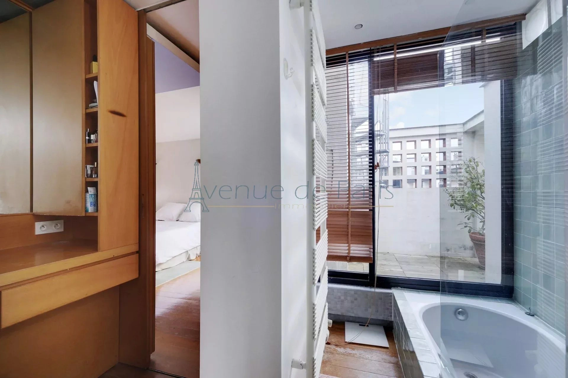 Le premier étage s’ouvre sur une cuisine conviviale prolongée d'une salle à manger et d’un salon lecture. À ce niveau, une vaste terrasse offre un véritable extérieur parisien pour profiter des beaux jours,
