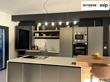 La cuisine américaine, aménagée et entièrement équipée, s’intègre harmonieusement à l’espace pour une atmosphère conviviale et élégante.
