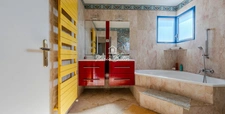 L’espace nuit se compose de quatre chambres, dont une chambre à l’architecture octogonale, ainsi qu’un dressing et une salle de bain.