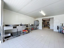 - une quatrième construction, comprenant au rez-de-chaussée: un séjour-cuisine d'été carrelée, une deuxième pièce à usage de laboratoire atelier avec une grande chambre froide, un espace traiteur, un congélateur, et à l'étage une pièce de plus de 150m2 de stockage, soit un 4ème bâtisse 280m2.