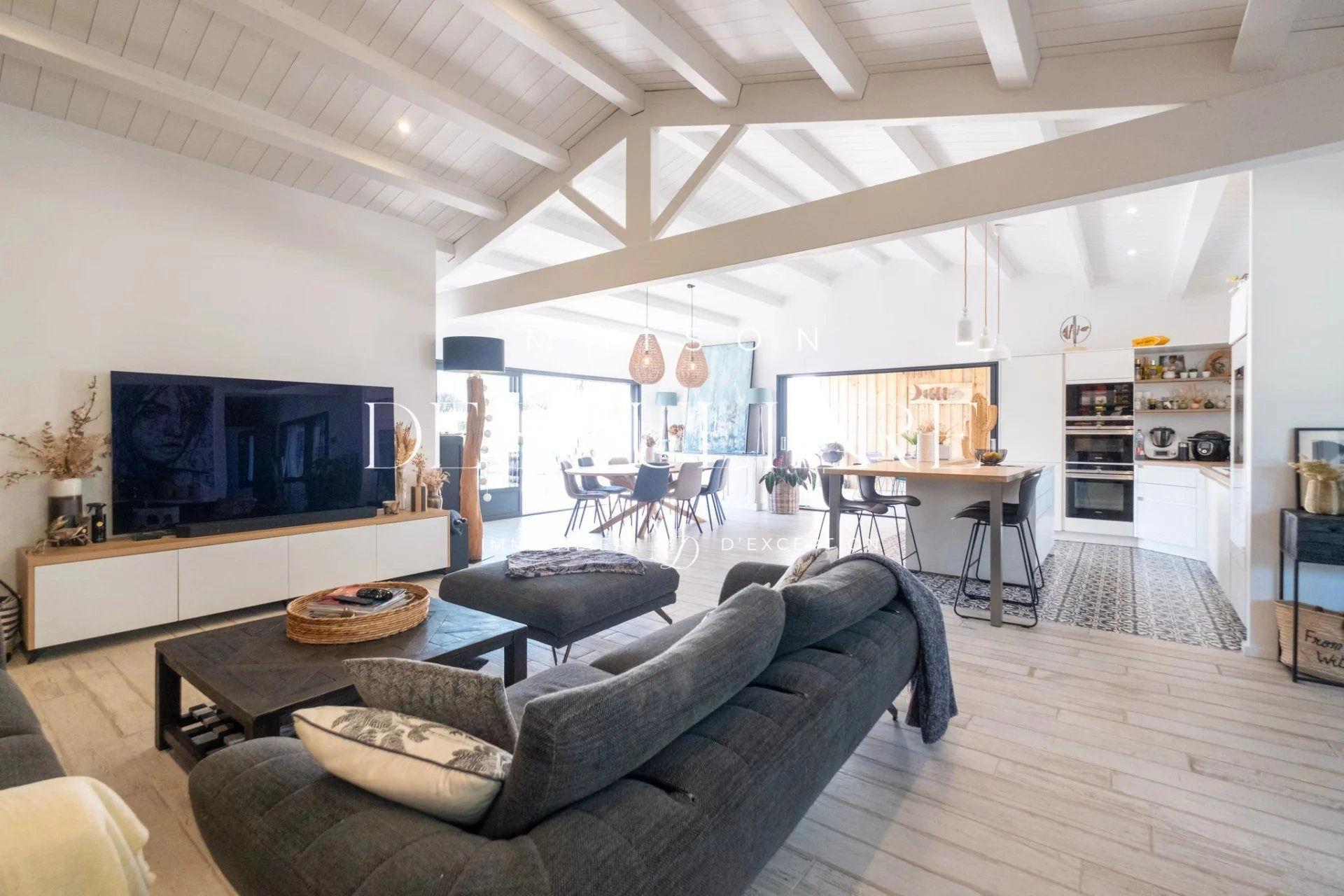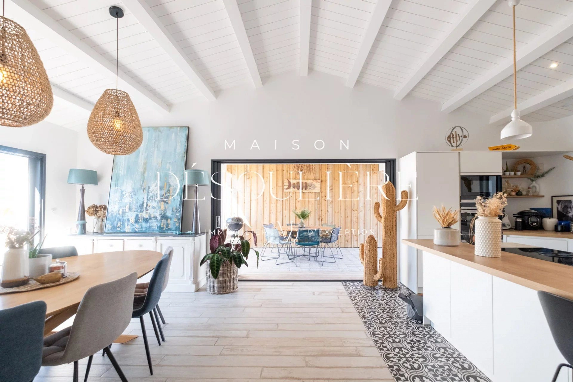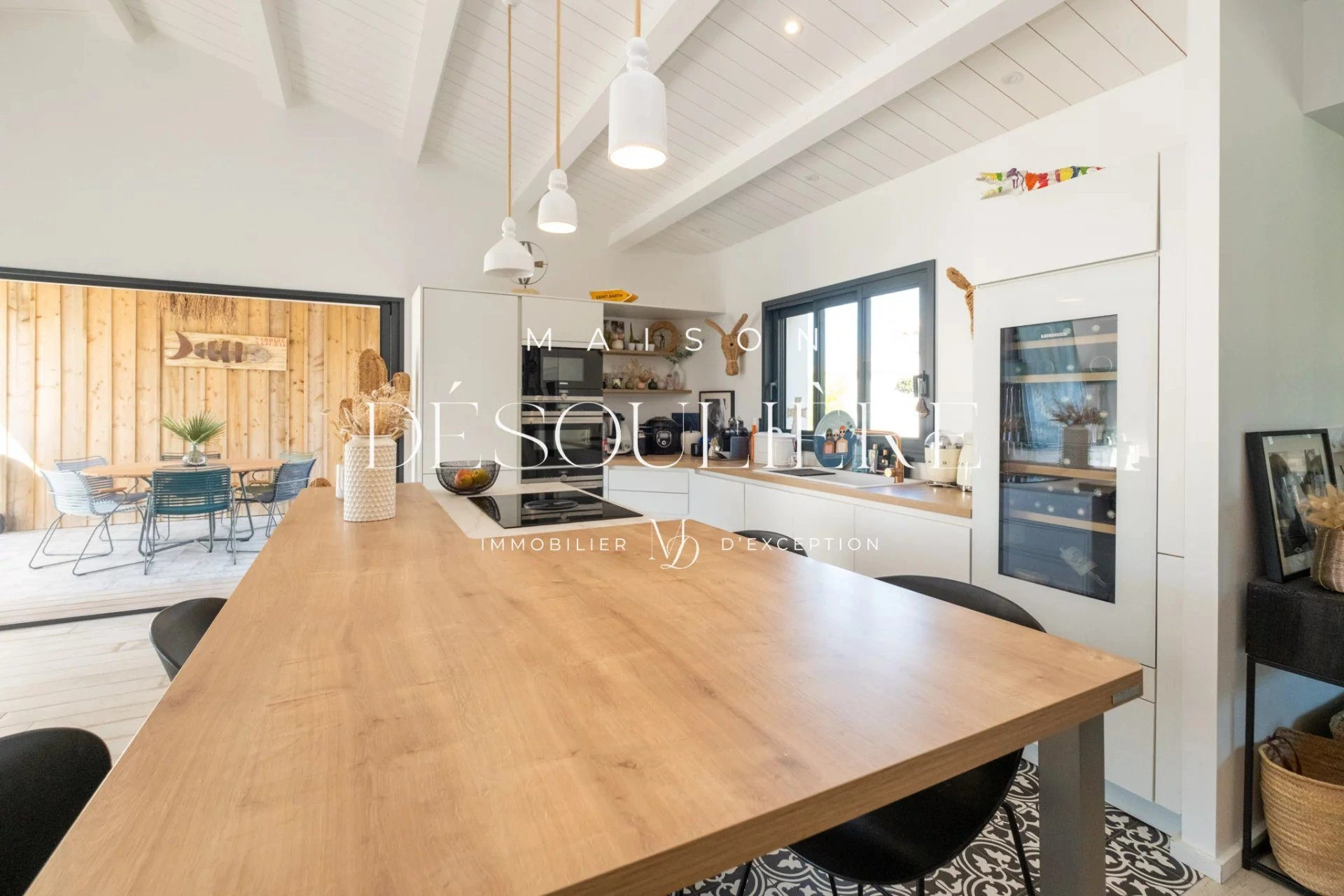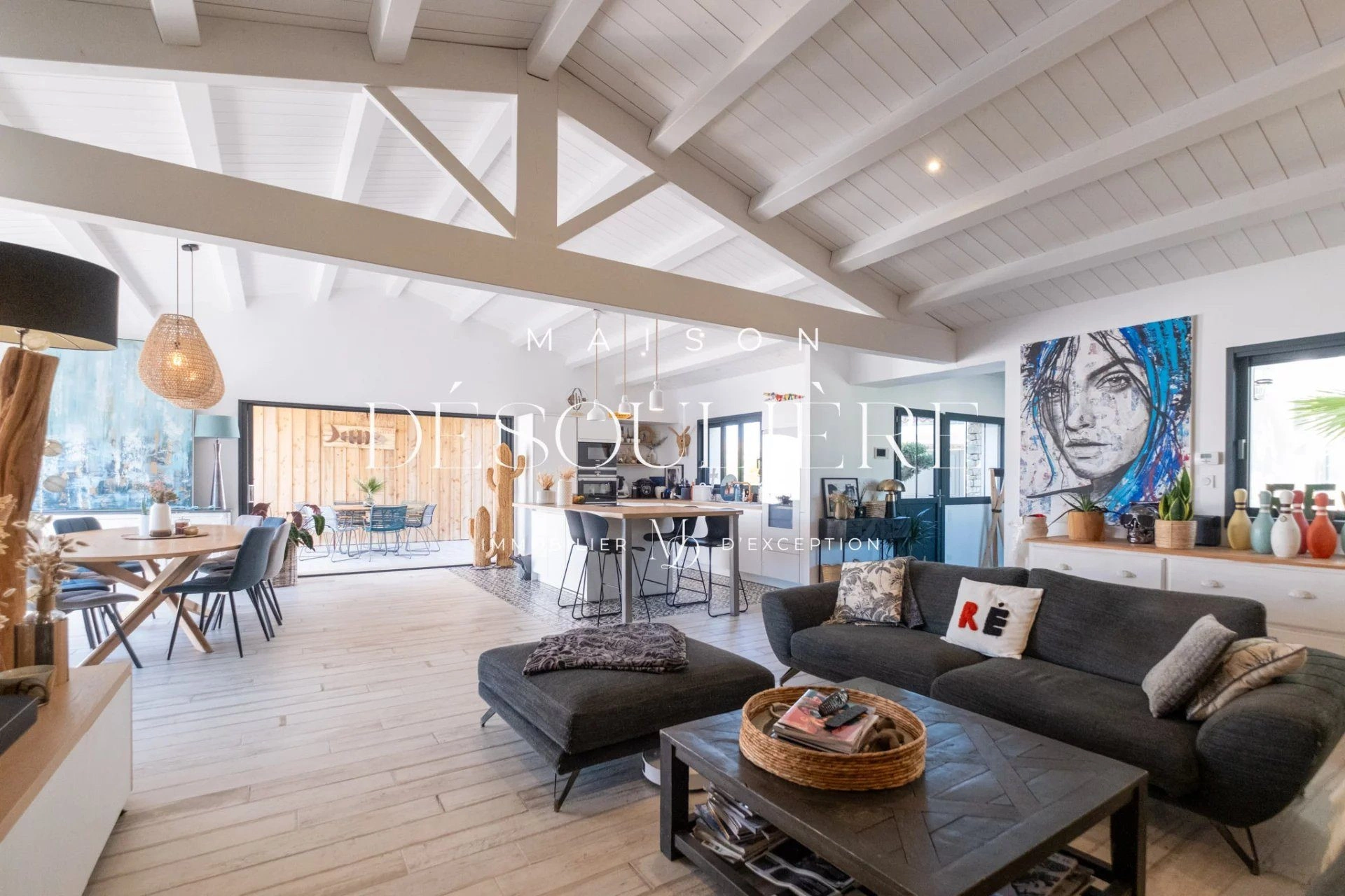 Maison Désoulière à le plaisir de vous présenter cette magnifique villa d'environ 200 m² située à Rivedoux-Plage, alliant charme, confort et modernité.