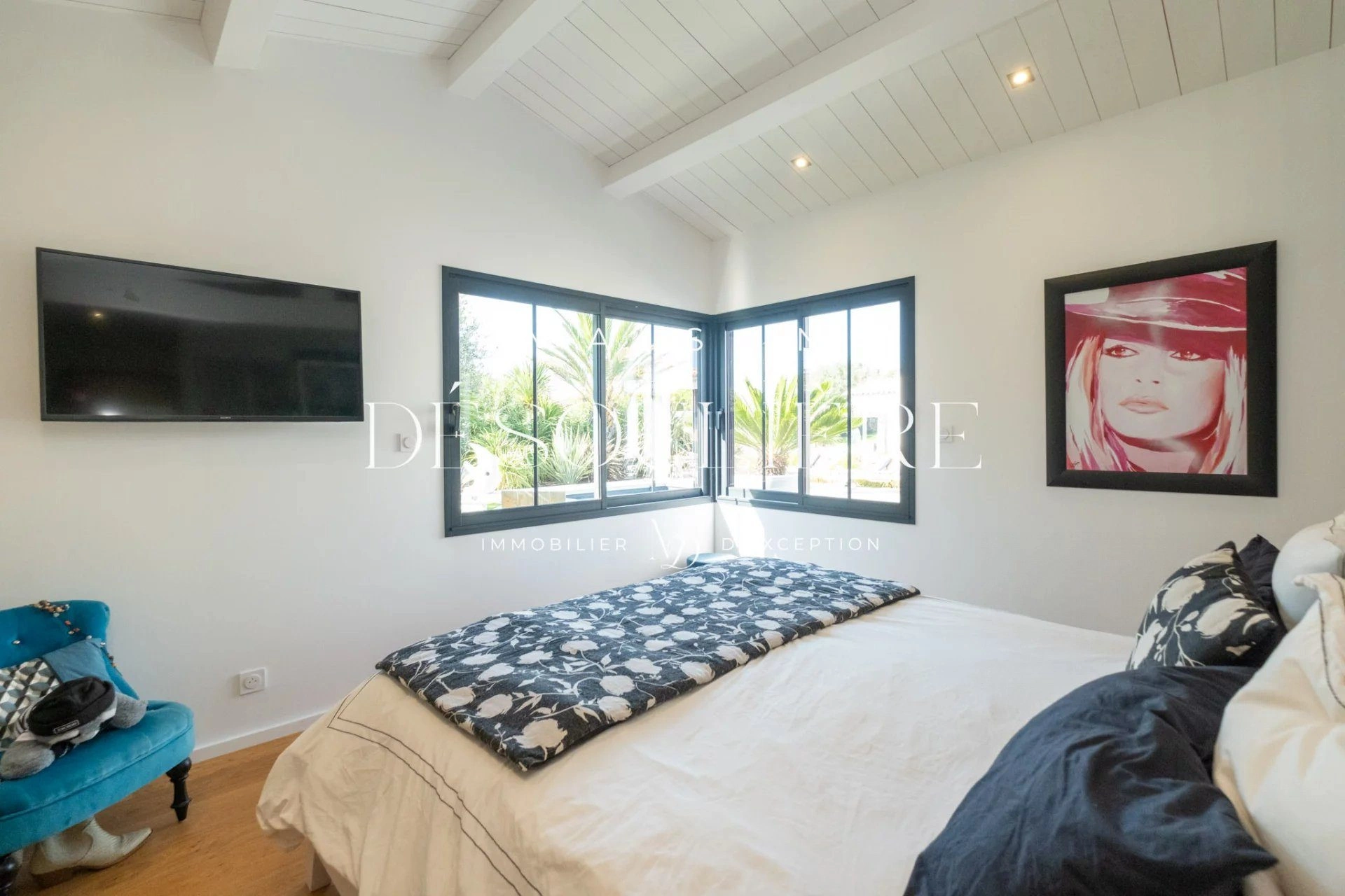 La villa comprend plusieurs chambres spacieuses, toutes décorées avec goût, ainsi qu’une cuisine moderne, ouverte sur le séjour et les extérieur, entièrement équipée.