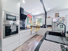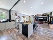 Au rez-de-chaussée, une grande cuisine équipée et fonctionnelle s’ouvre sur un espace convivial, complétée par une kitchenette, deux chambres et deux salles d’eau, pour un confort de vie de plain-pied.