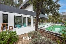 Développant environ 180 m² sur un terrain paysager de 1 000 m² en position dominante, la propriété bénéficie d’une exposition plein Sud et d’une vue dégagée sur la pinède, sans aucun vis-à-vis.