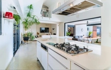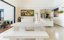 Un espace de vie de près de quatre-vingt-dix mètres carrés, baigné de lumière, prolongé par une varangue ouvrant sur une vue imprenable sur Saint-Gilles-les-Bains.