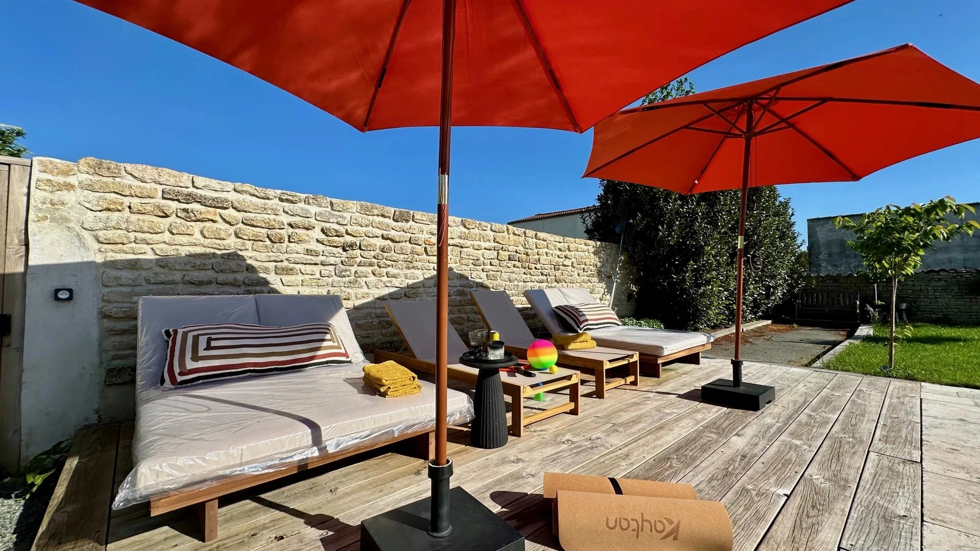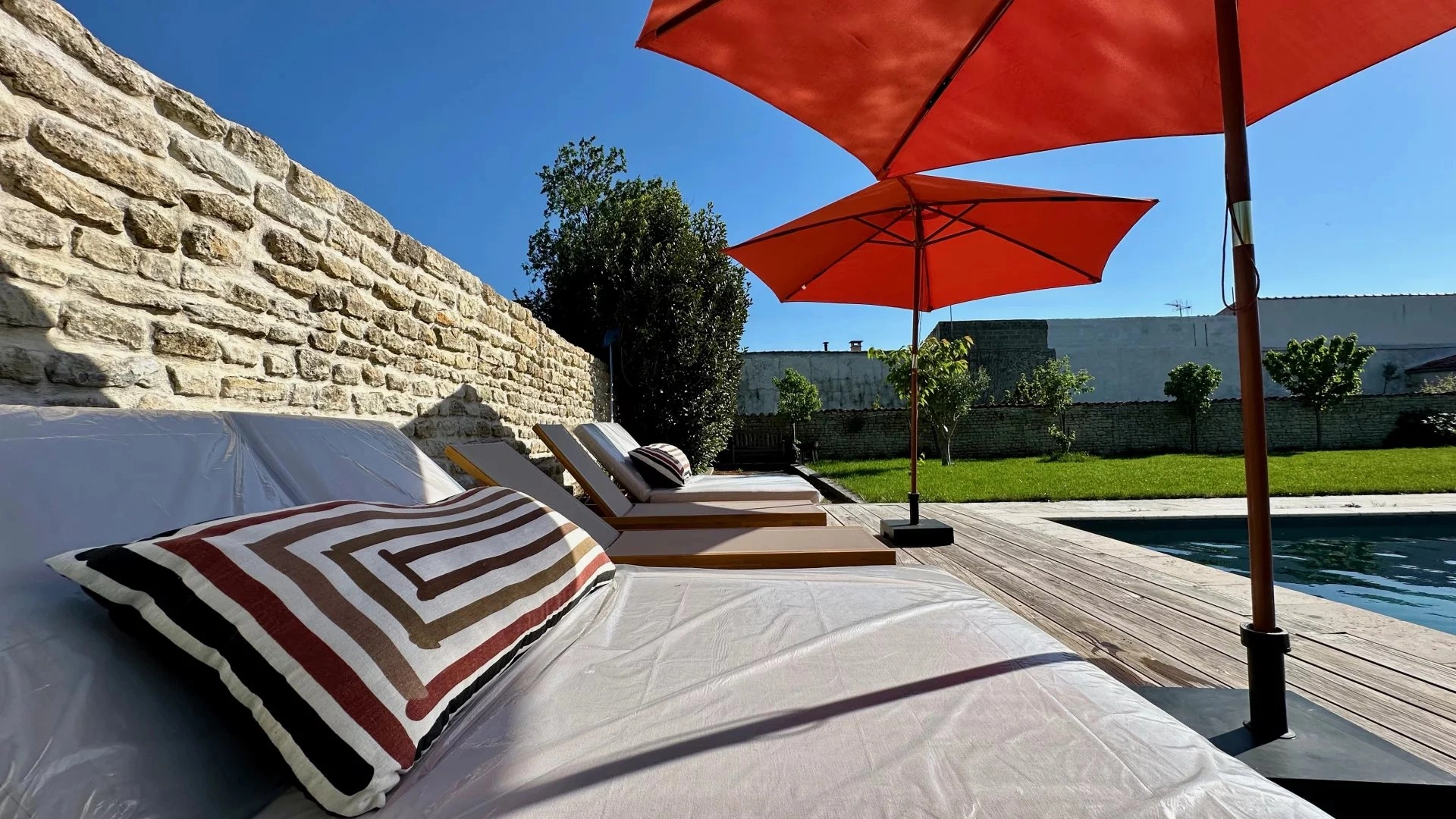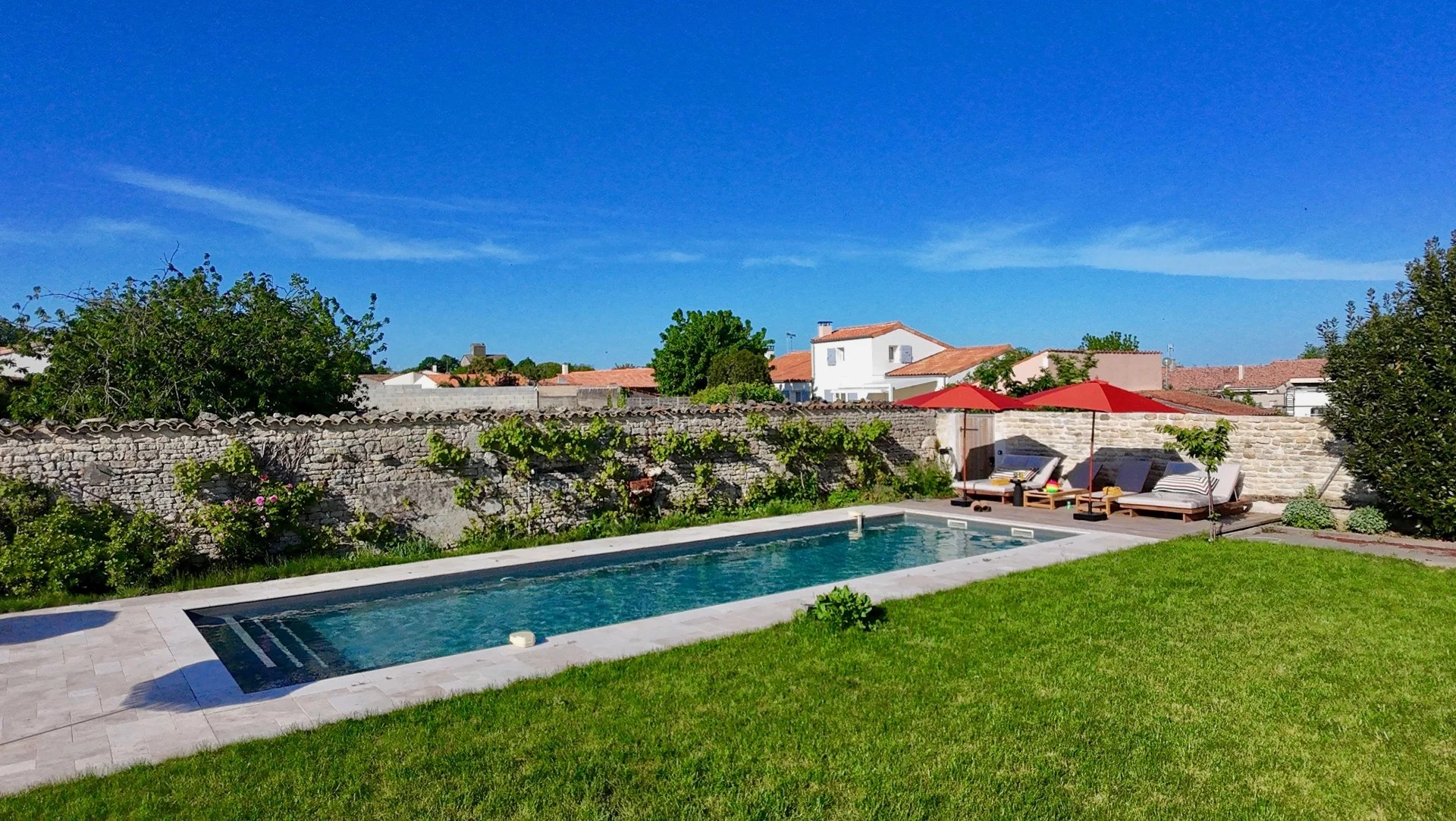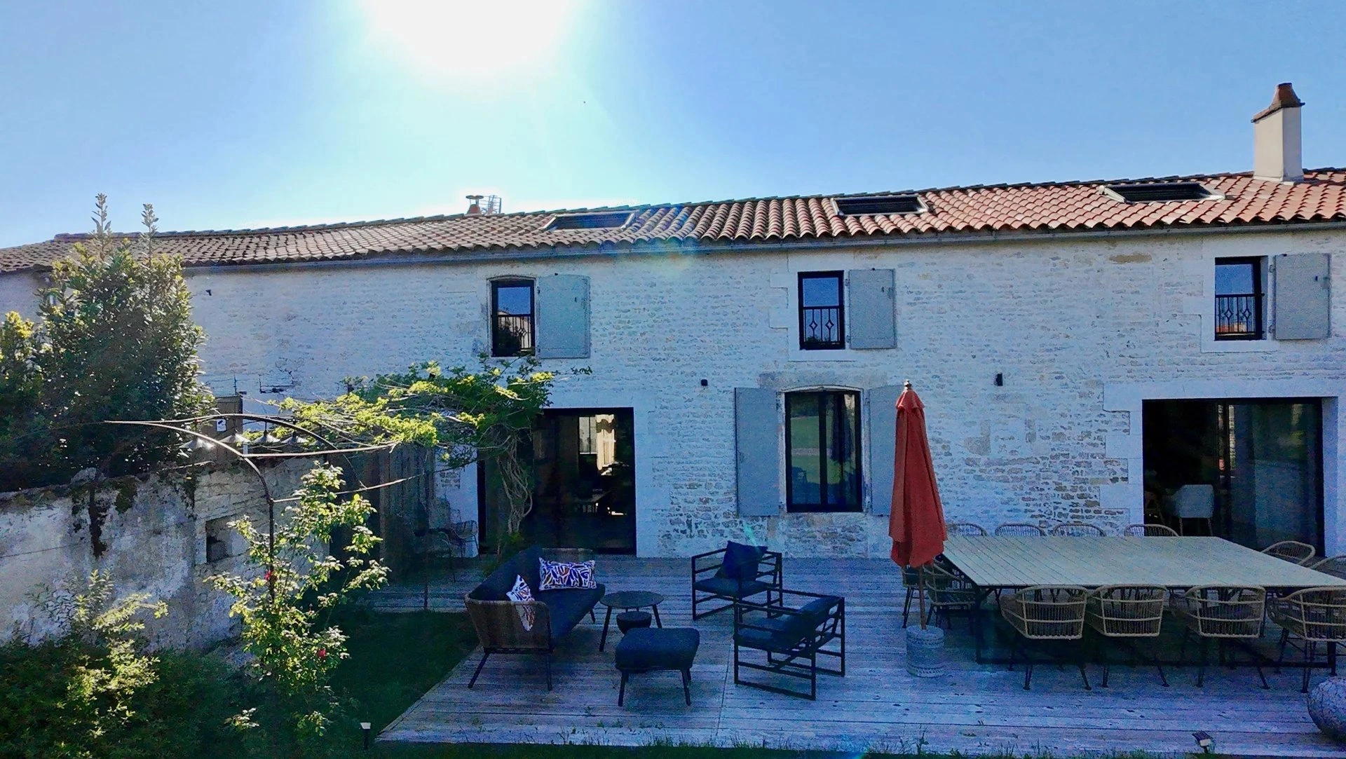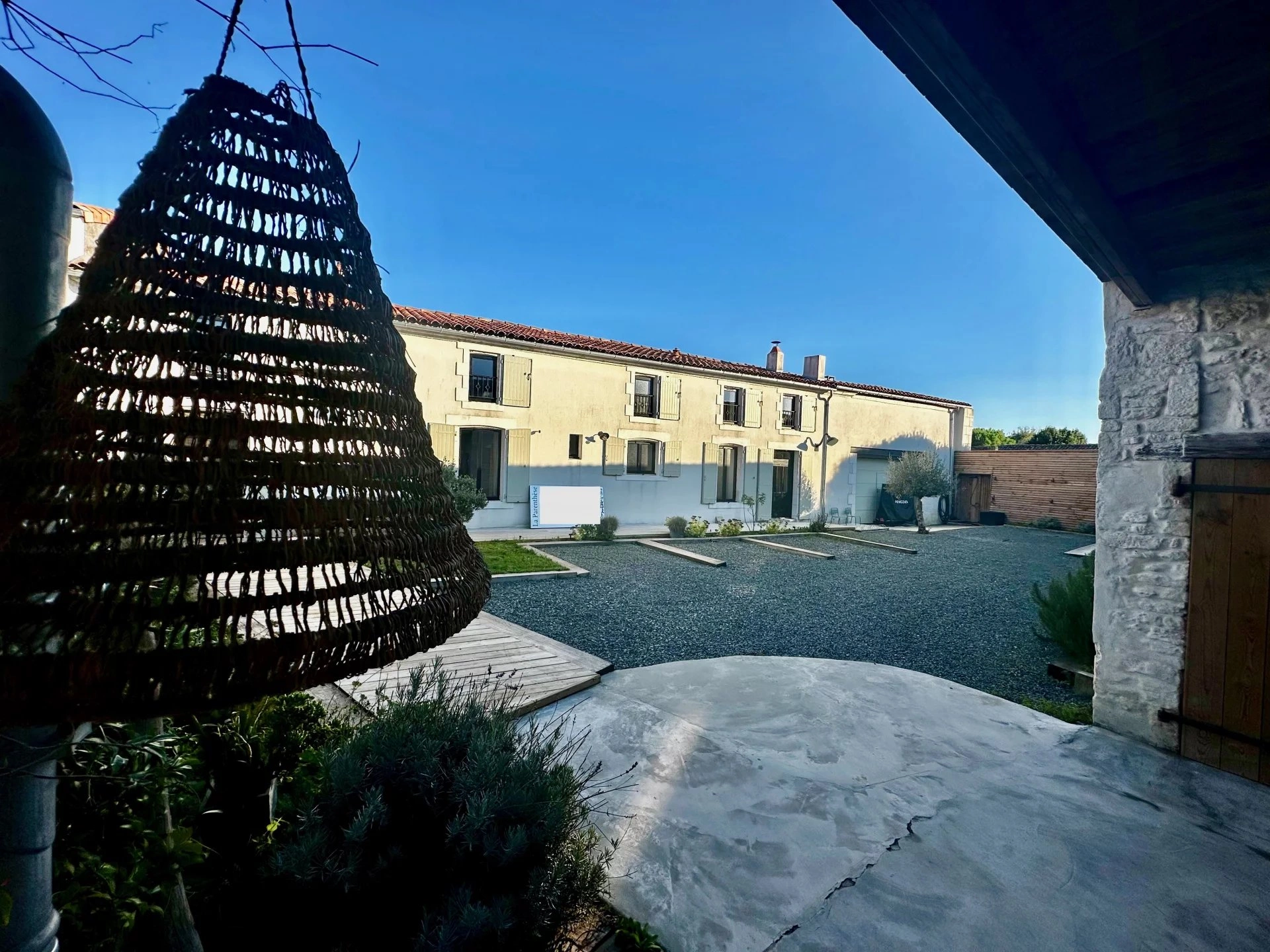 Un lieu qui vibre d’une énergie rare, posé dans le charmant village de Thairé, encore préservé, méconnu… et c’est tant mieux. Ici, on est à seulement 15 minutes du golf de la Jarne, tout proche de Châtelaillon-Plage et des plages, mais loin du tumulte, dans un cocon de verdure et de charme. Une propriété pensée pour accueillir, partager, se ressourcer : Un extérieur paysagé pour vivre dehors autant que dedans : grande piscine, terrain de pétanque, terrasse en bois pour les longues soirées d’été.