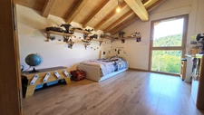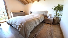 À l’étage, place à un deuxième salon avec belle hauteur sous plafond, offrant une atmosphère chaleureuse et ouverte. Vous y trouverez également trois chambres, dont une avec balcon vue vallée, un bureau fonctionnel et une grande salle de bain équipée d’une double vasque ainsi qu’un second toilette indépendant.