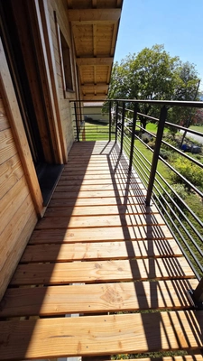 Dès l’entrée, vous serez séduits par une pièce de vie spacieuse et baignée de lumière, ouverte sur une cuisine "Ixina" moderne avec îlot central, parfaite pour partager des moments conviviaux. Cet espace accueille également un salon confortable, une salle d’eau et des toilettes indépendants avec point d’eau.